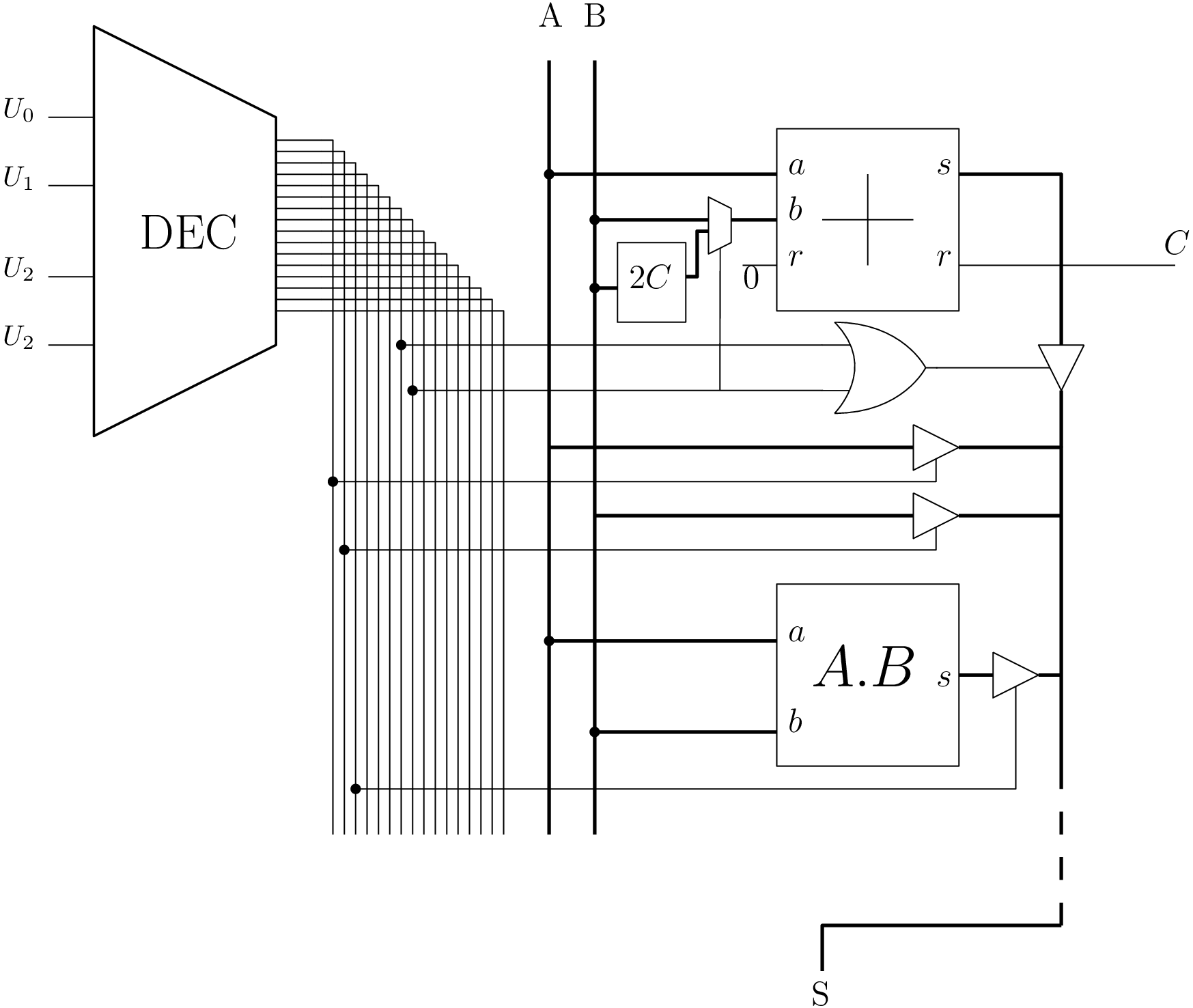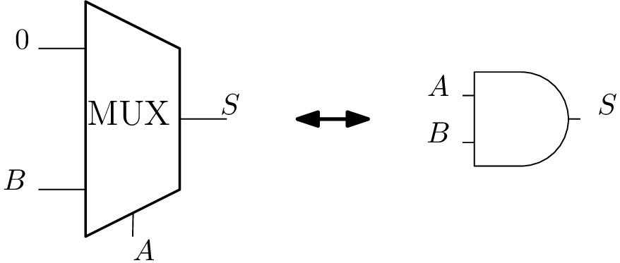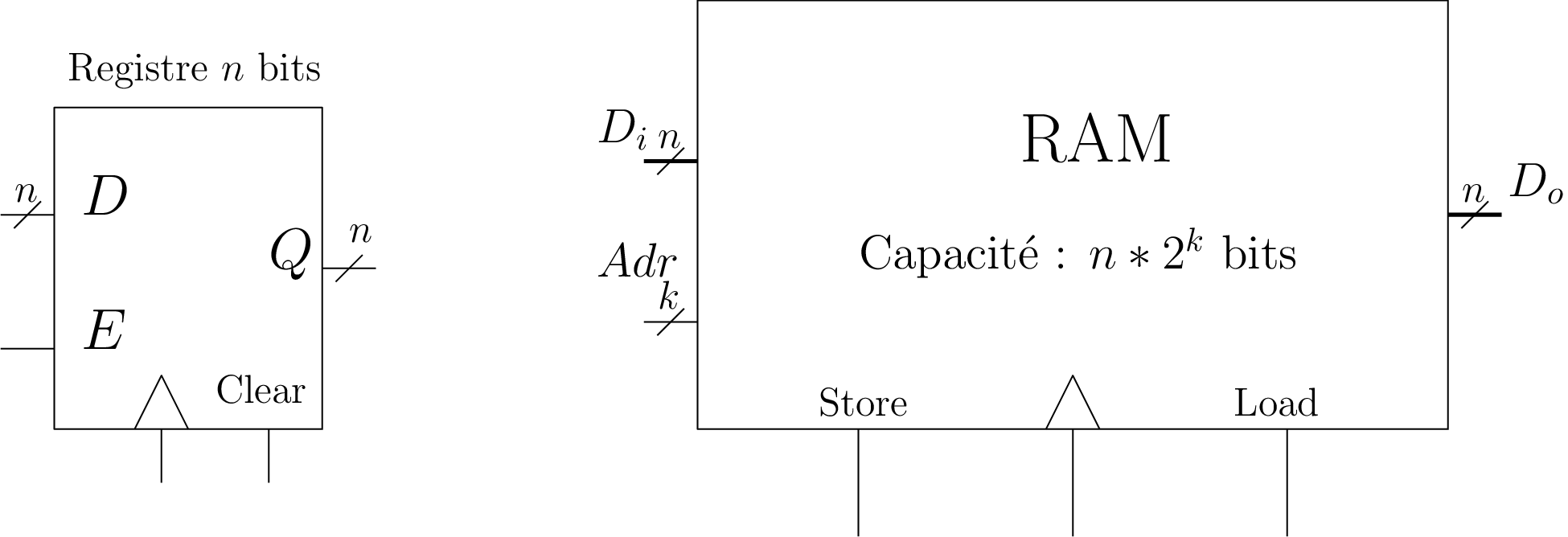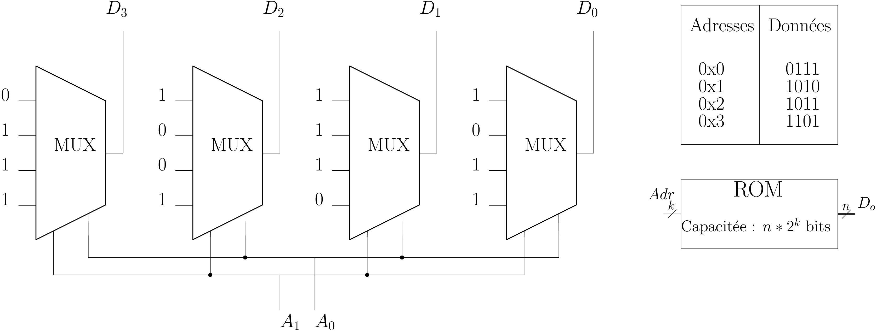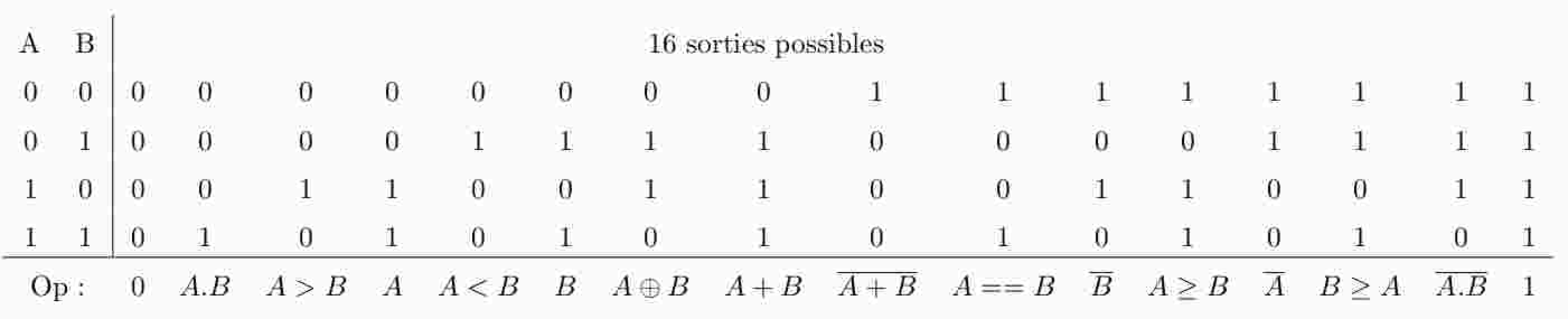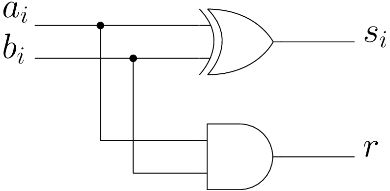 Demi-additionneur : \[(a,b) \rightarrow (retenue, reste)\]