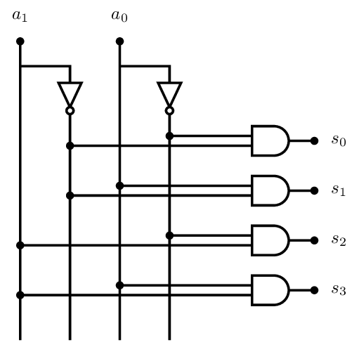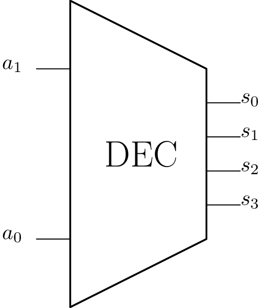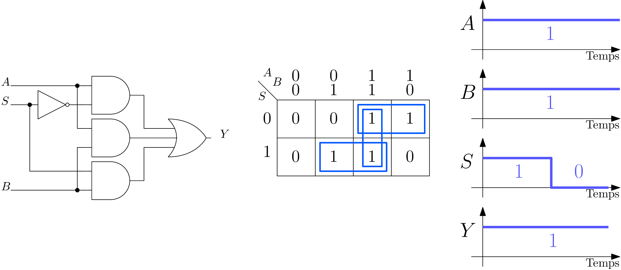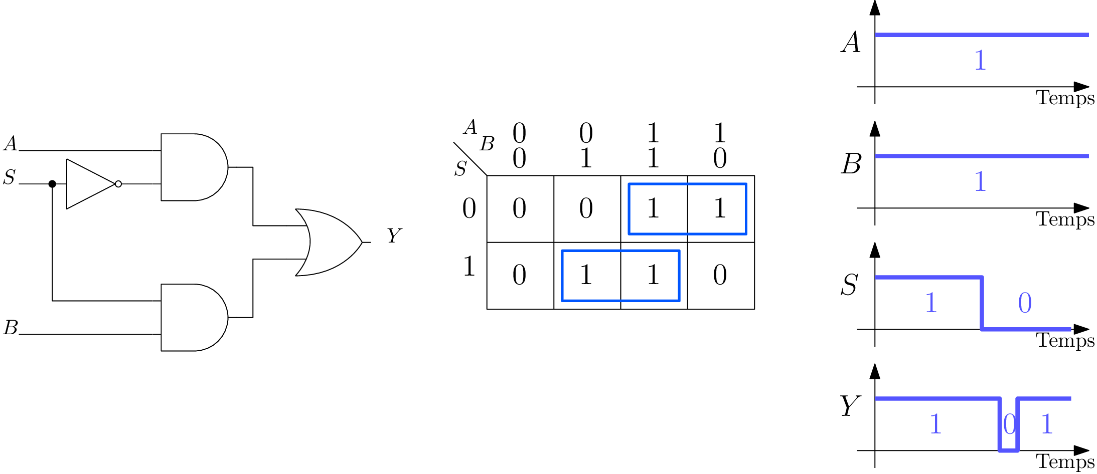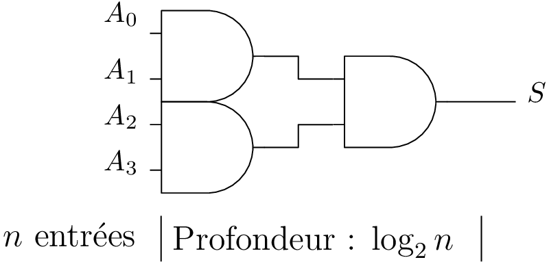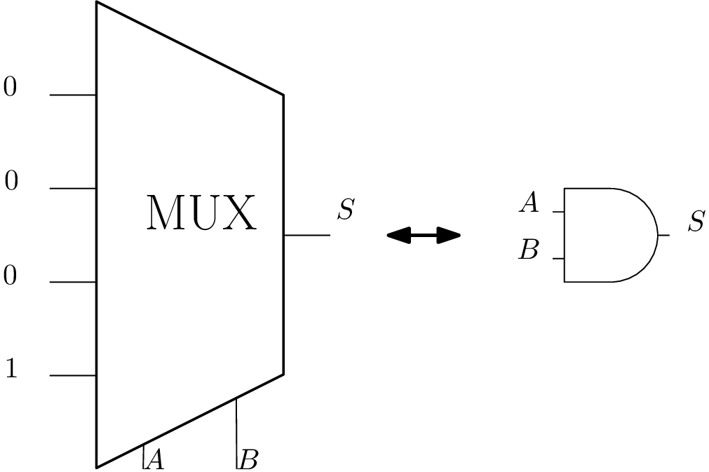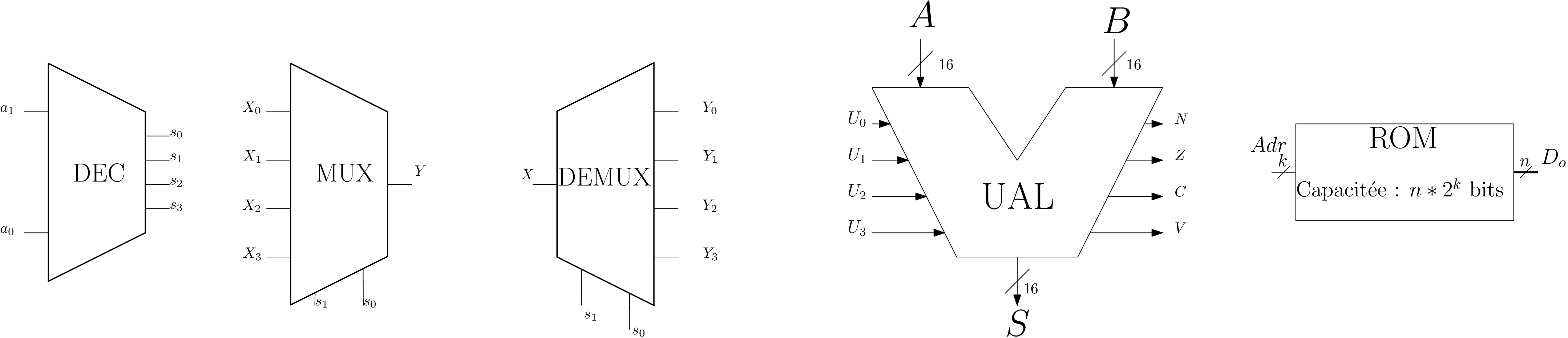 Demi-additionneur : \[(a,b) \rightarrow (retenue, reste)\]
