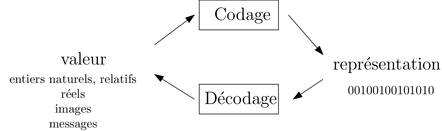 Une valeur, quelle que soit sa nature, doit être représentée en binaire :