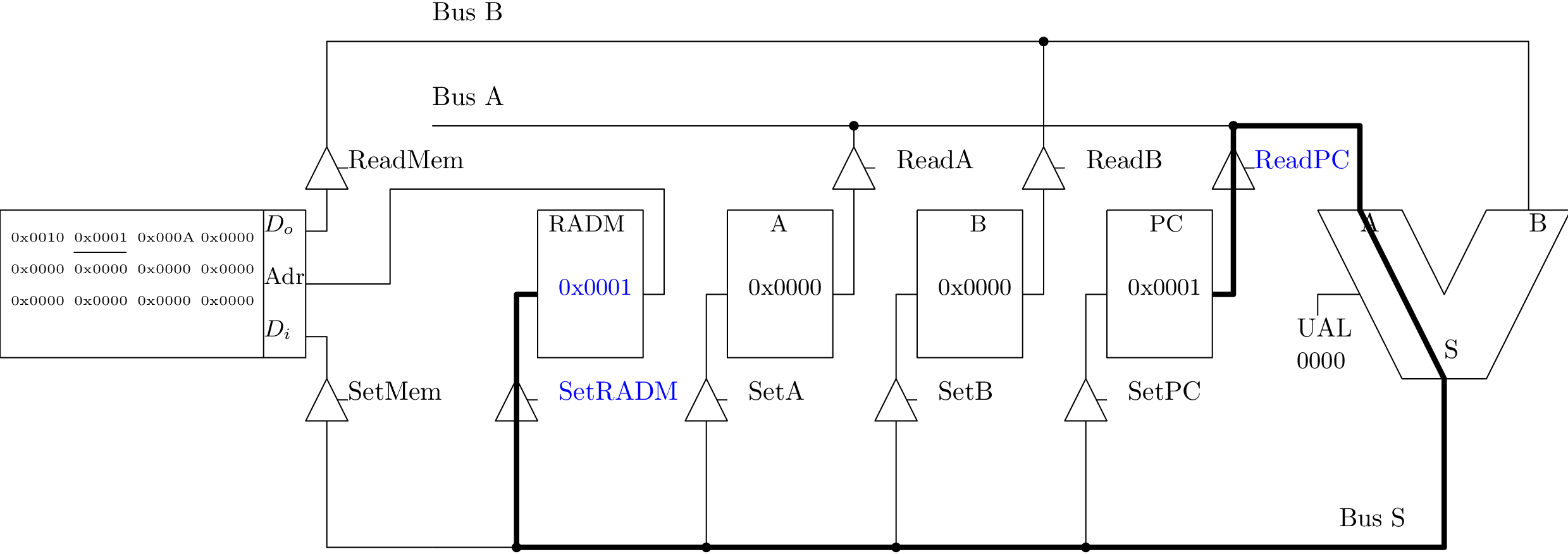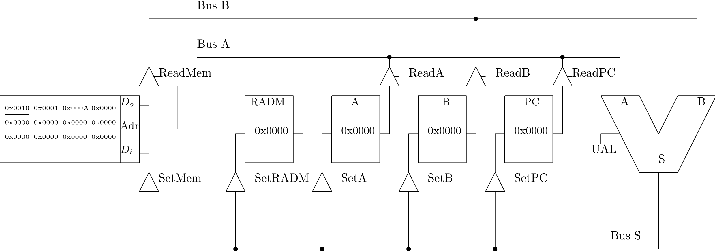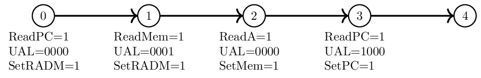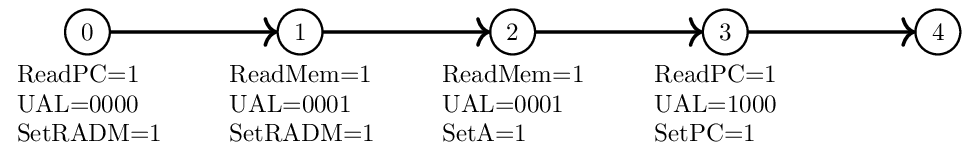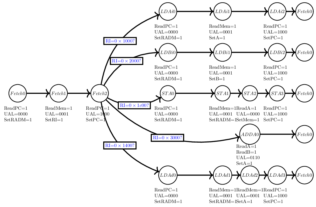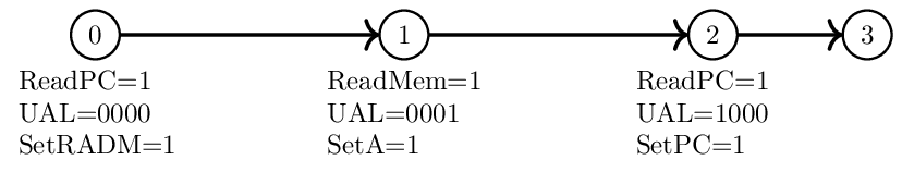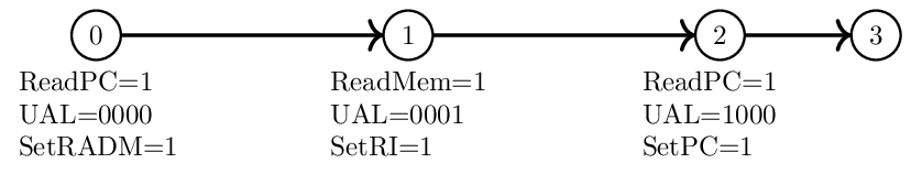 Réalisation matérielle ? Soyons astucieux sur le codage des états en codant les instructions à partir de l’adresse définie par les 8 bits de poids forts.