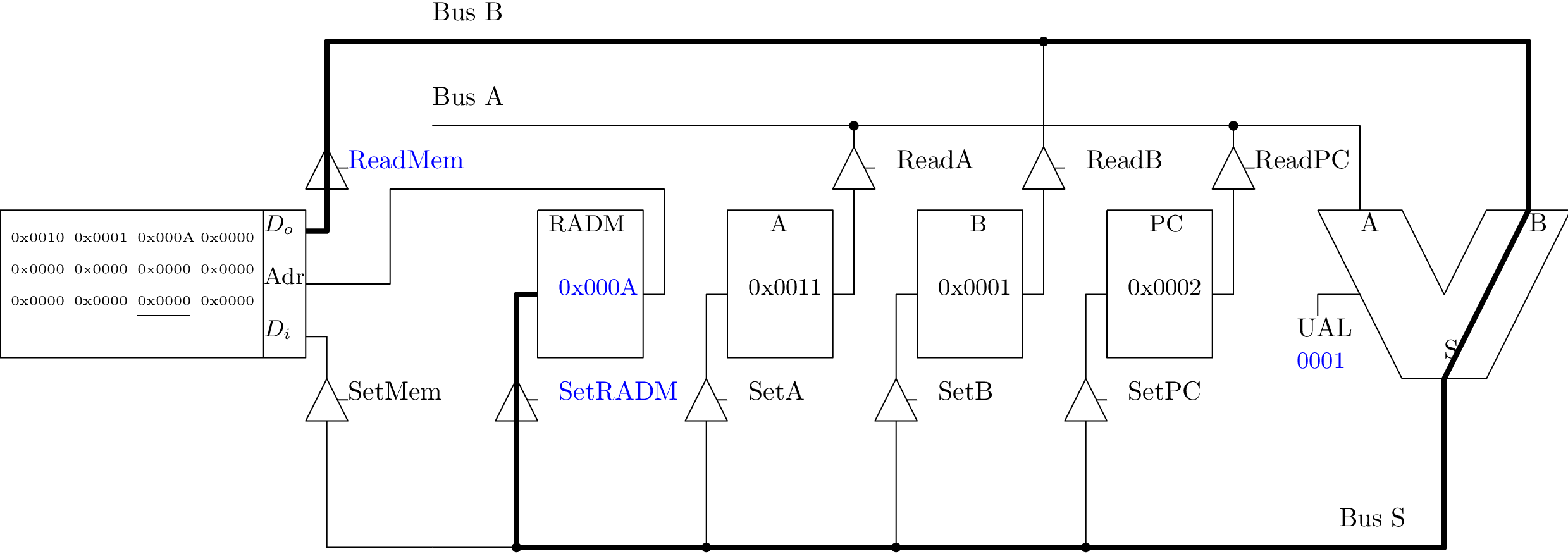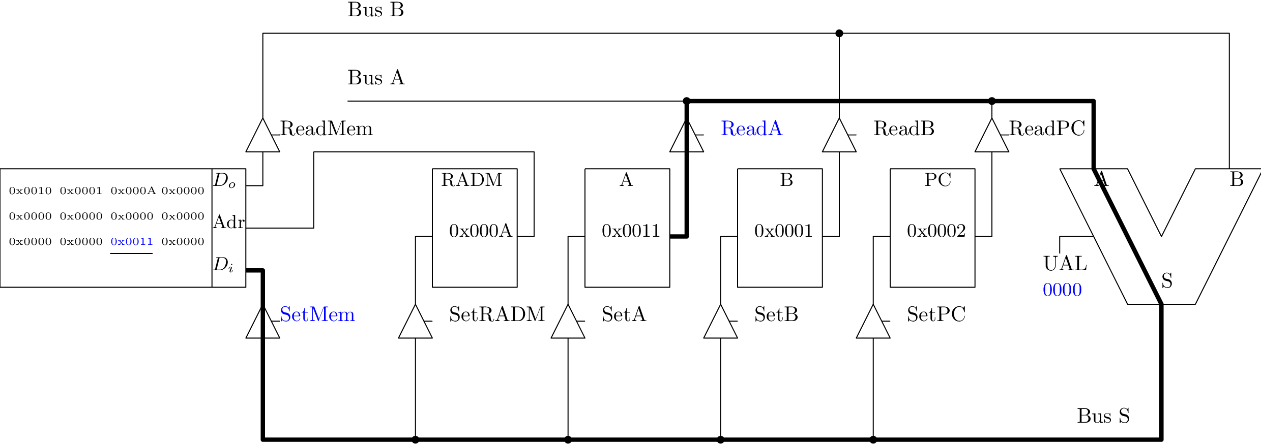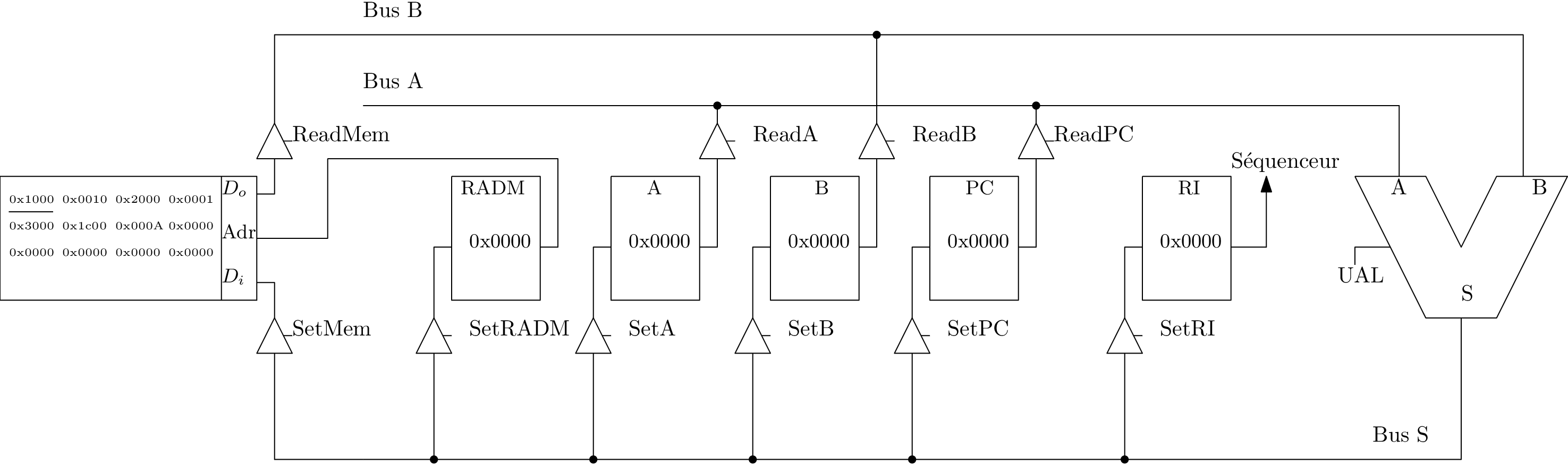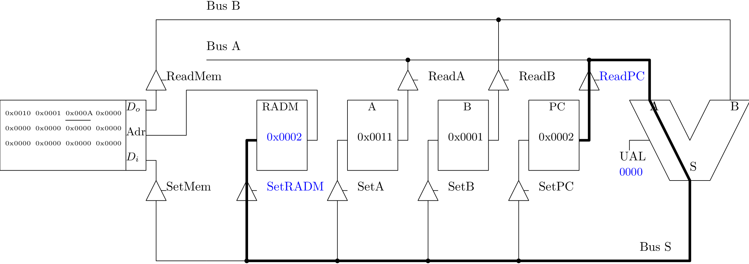 Réalisation matérielle ? Soyons astucieux sur le codage des états en codant les instructions à partir de l’adresse définie par les 8 bits de poids forts.
