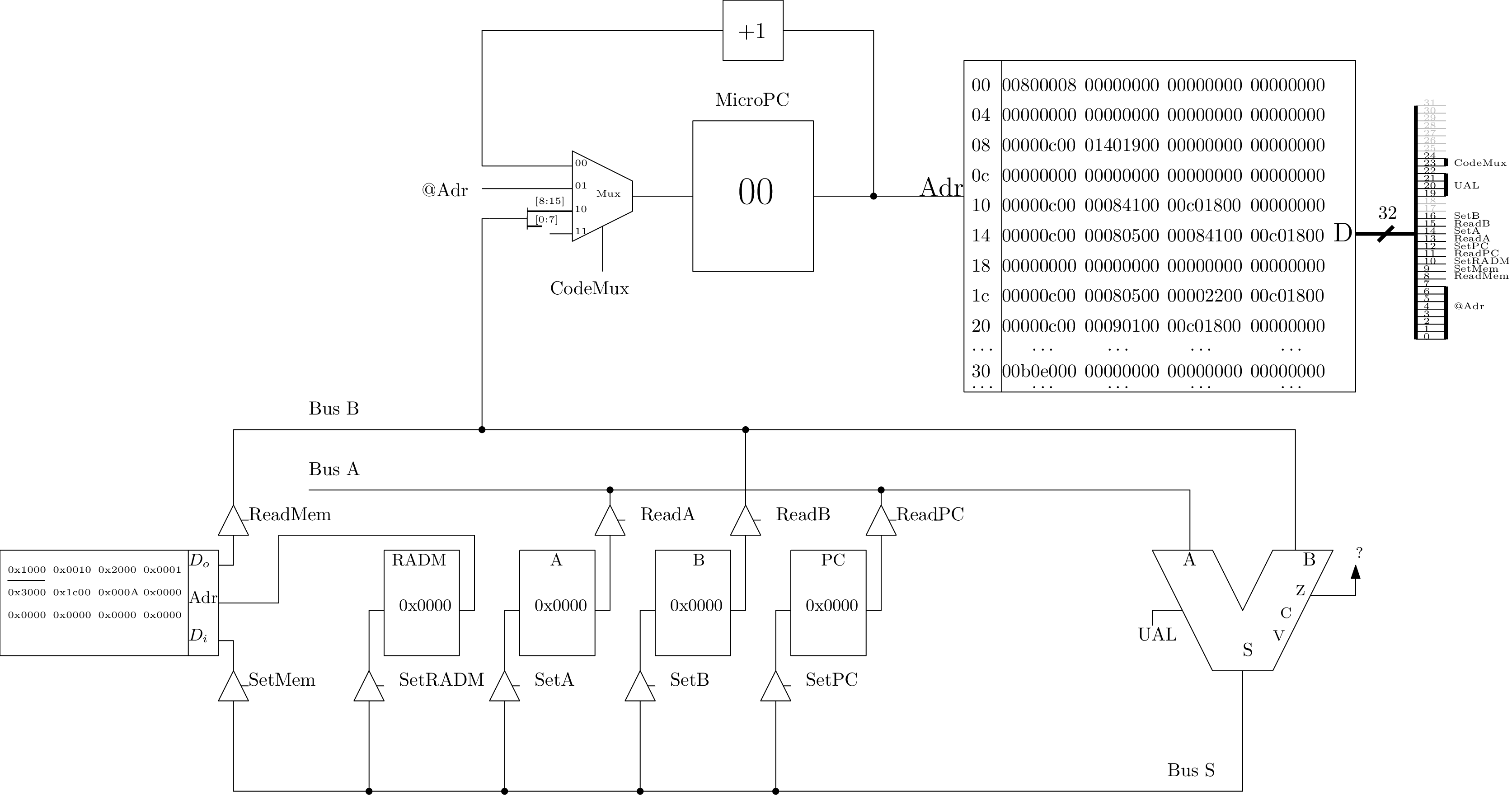 | 011 | 0 | 00 | MicroPC := MicroPC+1 si la sortie de l’UAL ≠ 0 |