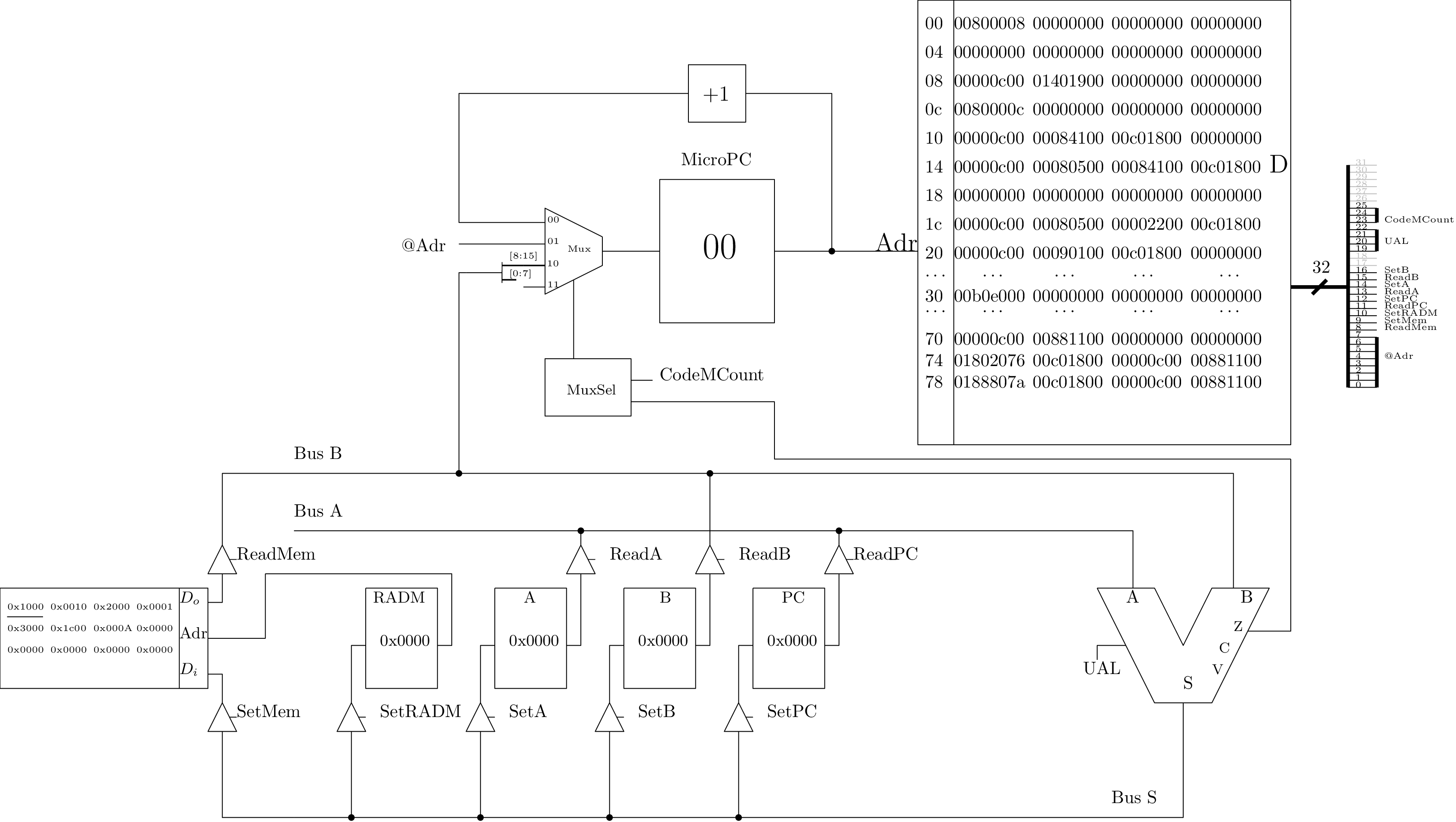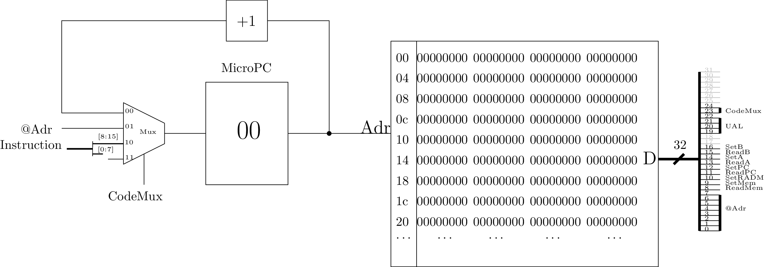 | 001 | 0 ou 1 | 01 | MicroPC := @Adr |