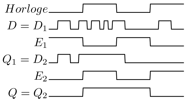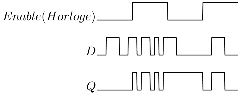 On présente une donnée \(D\) écrite sur niveau haut \(Enable\).