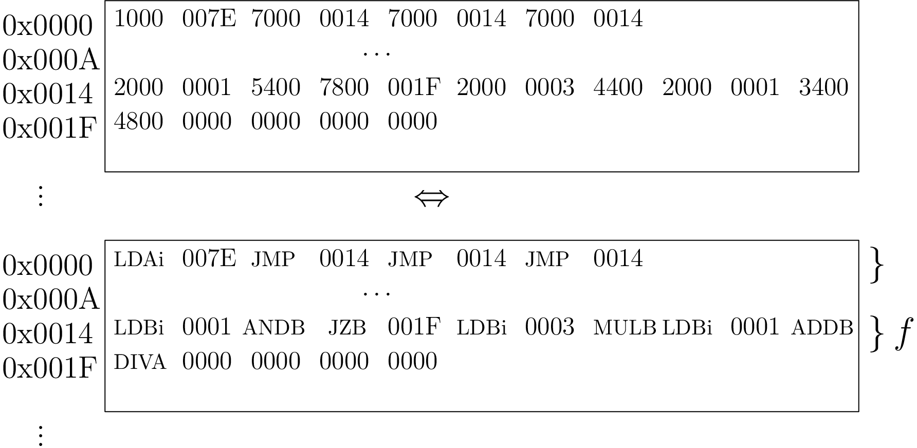 | 0x1000 | LDAi | 2 | Charge la valeur de l’opérande dans le registre A. [A:=opérande] |