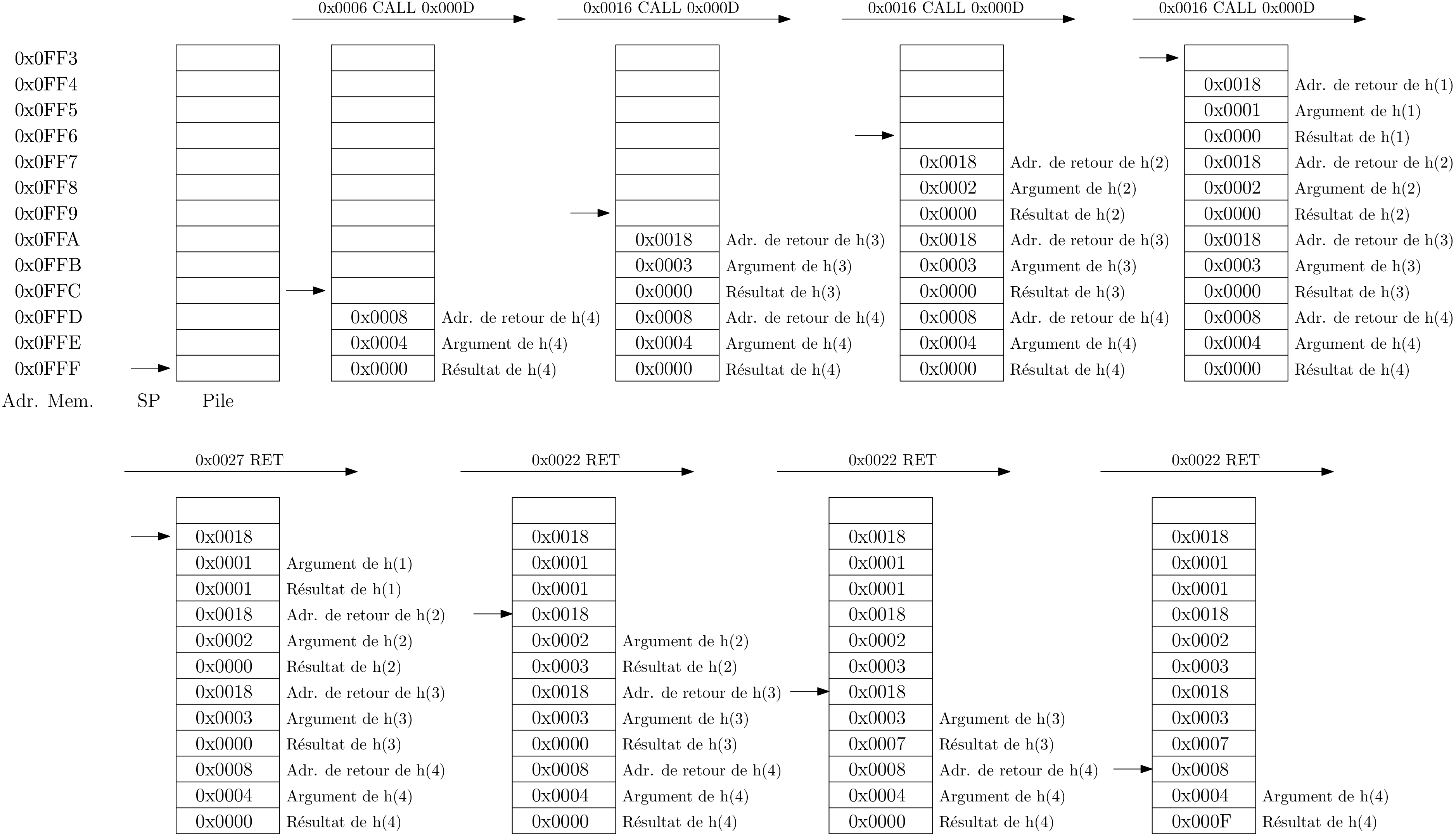 Exercice : Définir le code assembleur pour calculer \(h(4)\).