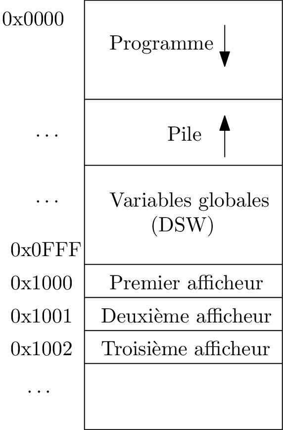 Compteur d’emplacement, table des symboles, variables globals; cf syr.asm