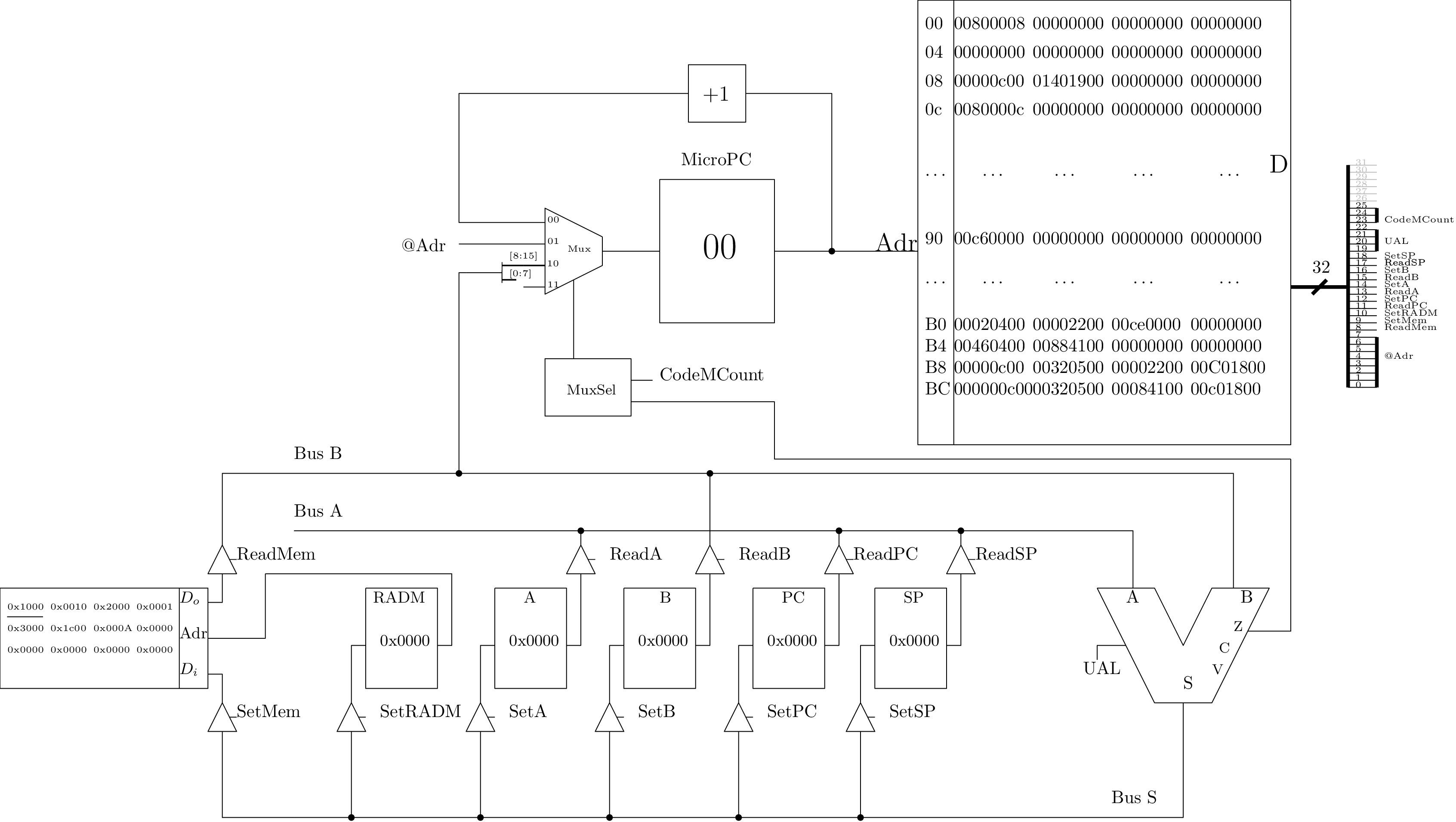 | 0x7800 | JZB | 2 | Saute à l’adresse donnée par l’opérande si le contenu du registre B est nul. [PC := operande si B=0] |