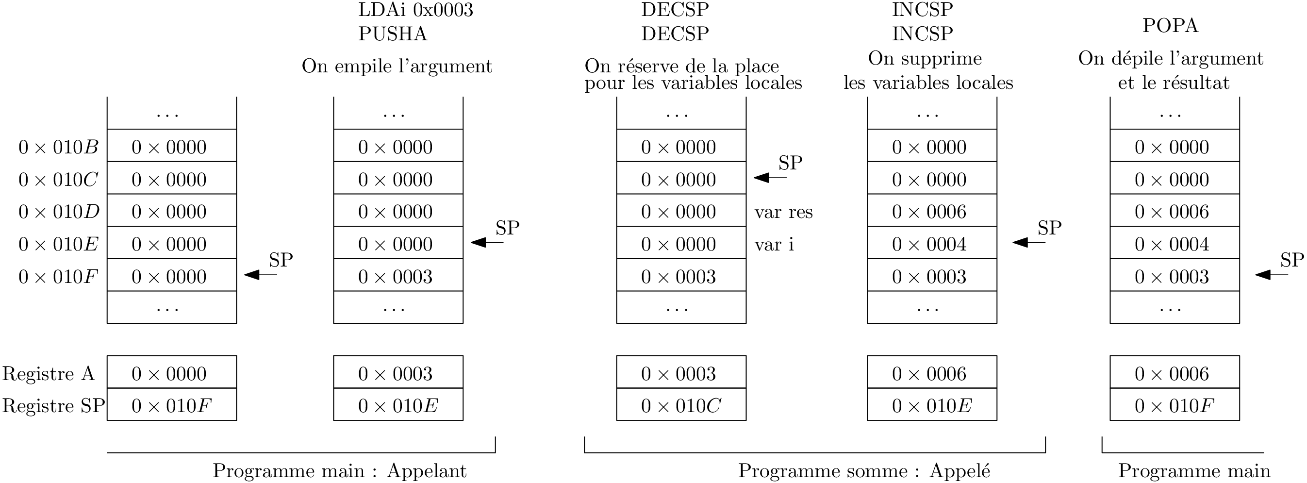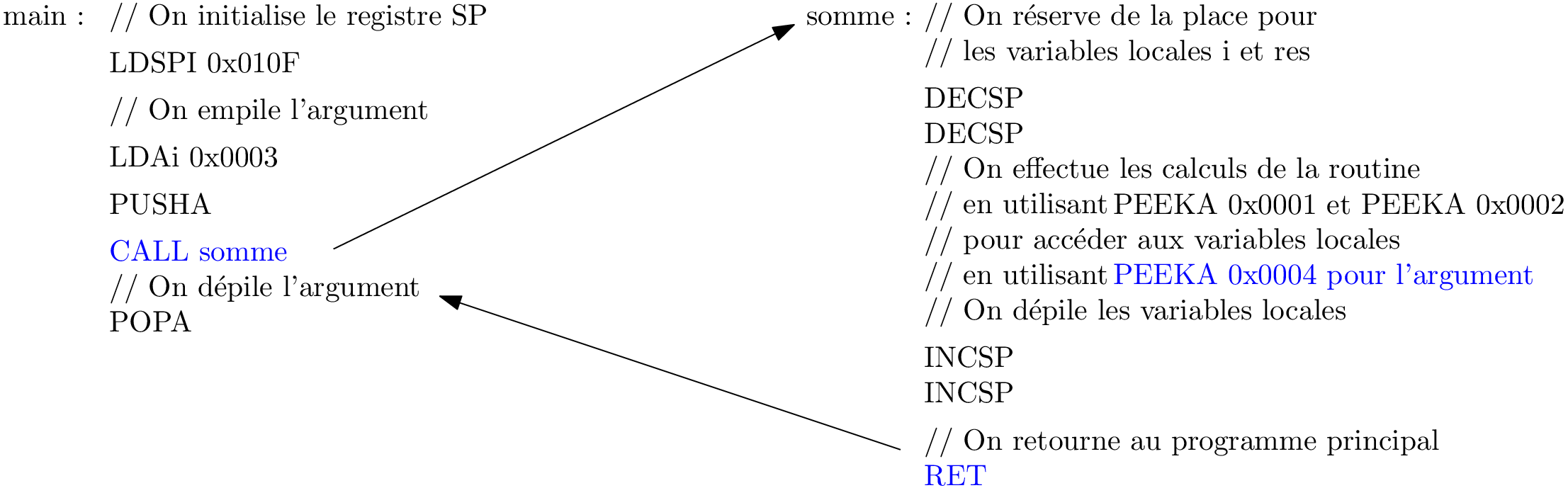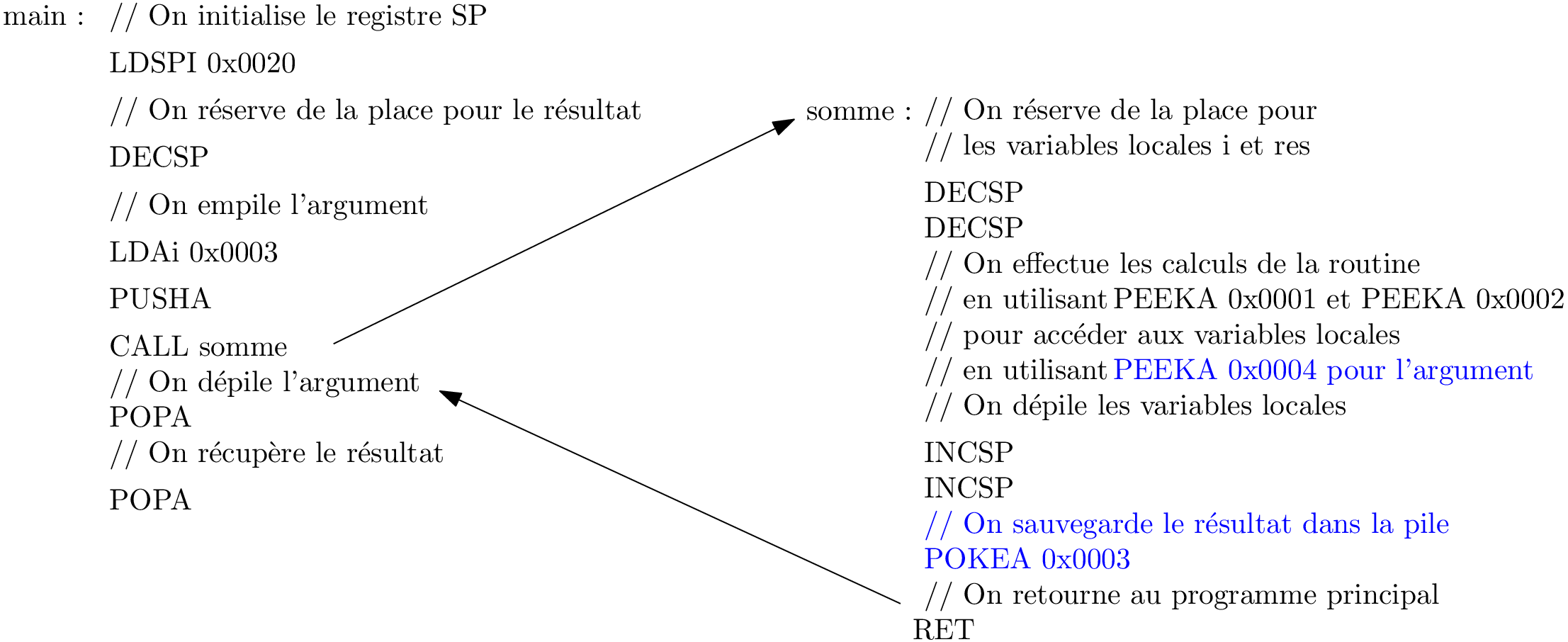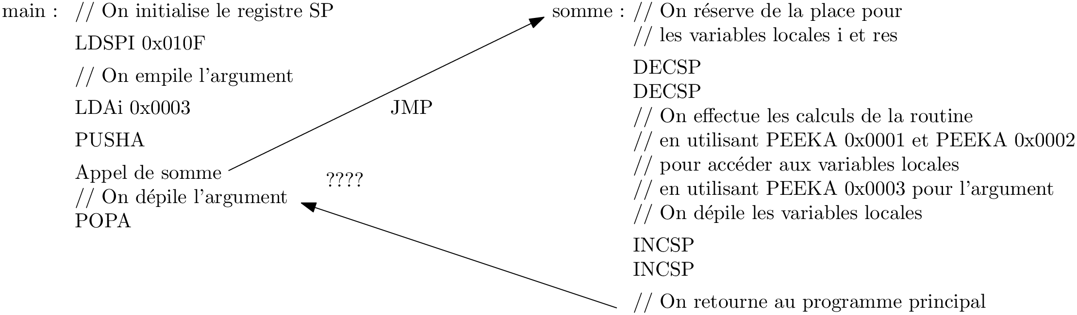 Attention, il faut penser à l’ajout de l’adresse de retour lorsqu’on indexe la pile (e.g. PEEK, POKE).