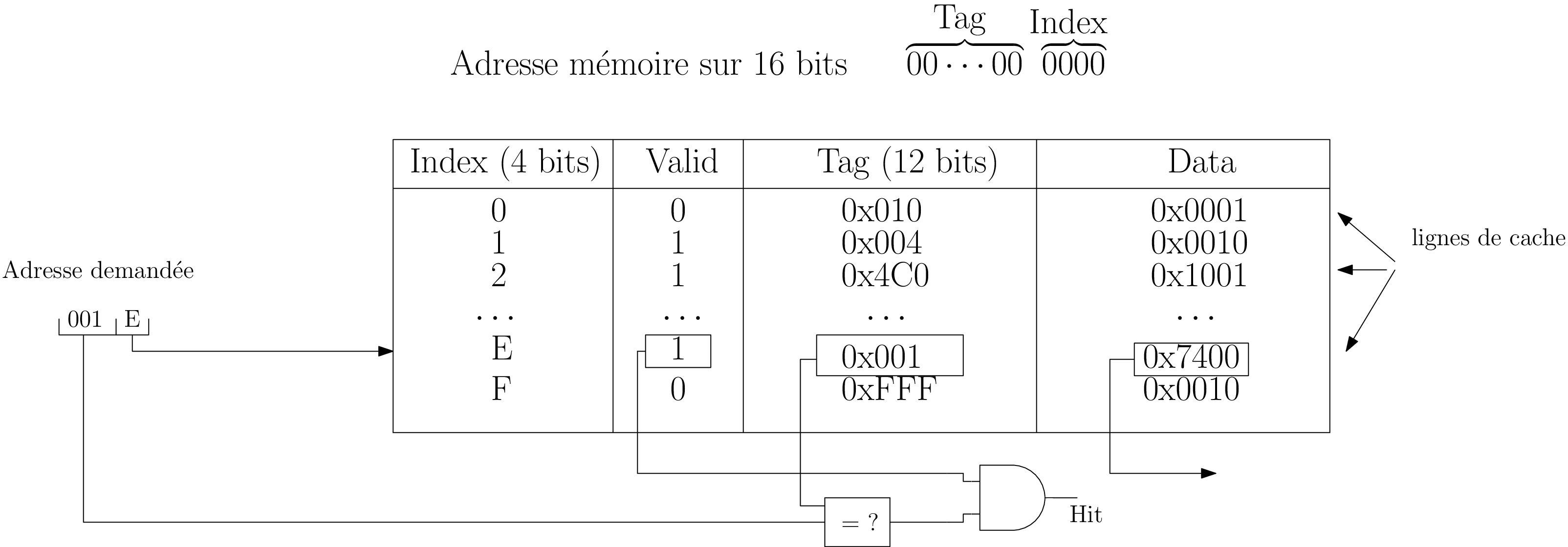 Tableau associatif : Cache[clé] = {adr, valeur, ..}