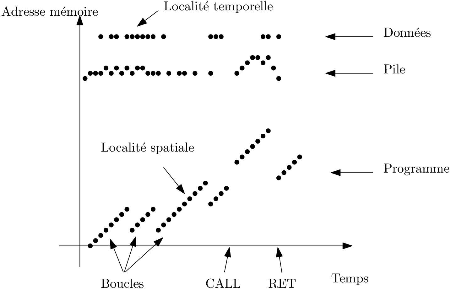 Temps moyen d’accès mémoire \(T_m \approx HR. t_{cache} + MR. t_{mem}\)