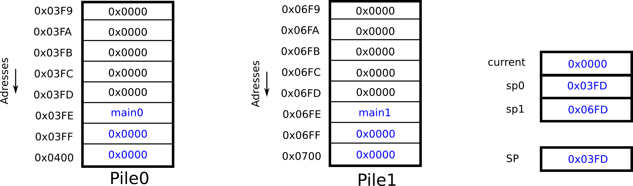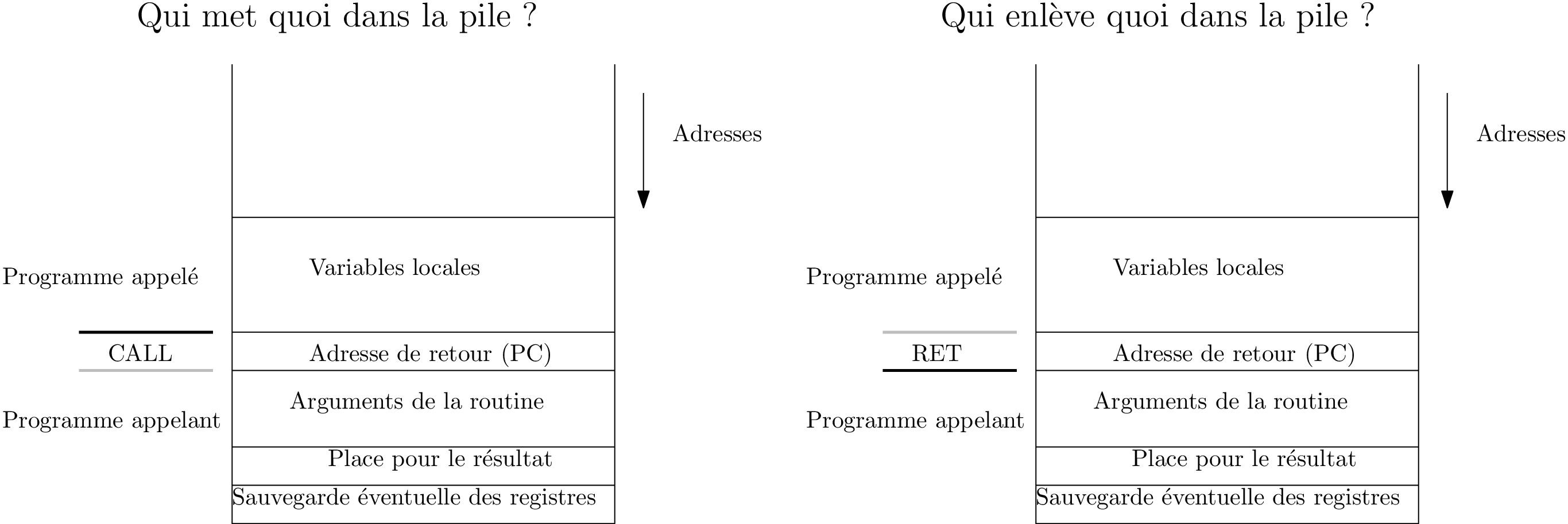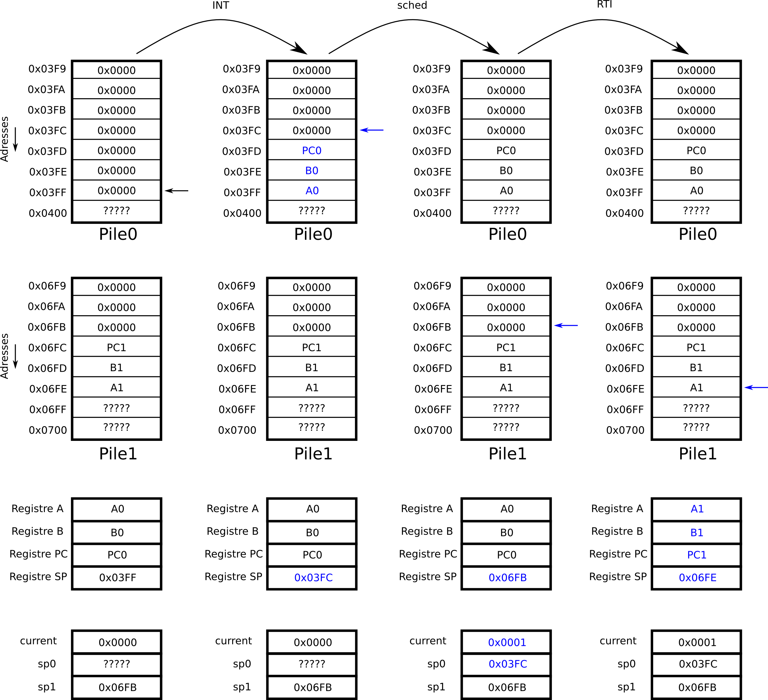 ⇒ sauvegarde du contexte d’exécution (sur la pile)