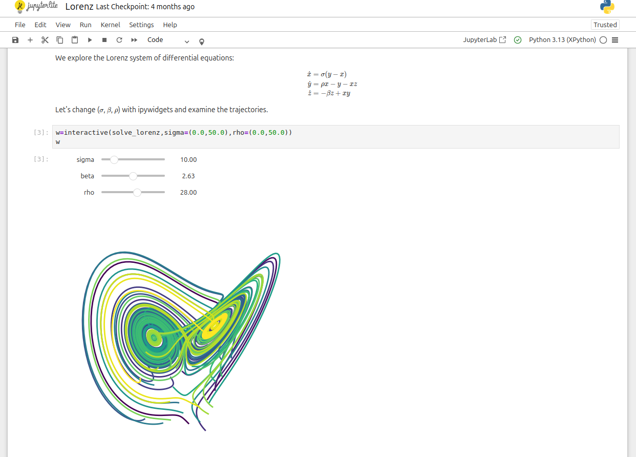 Voir ces exemples à essayer dans le navigateur, e.g. le simulateur de l’attracteur de Lorentz