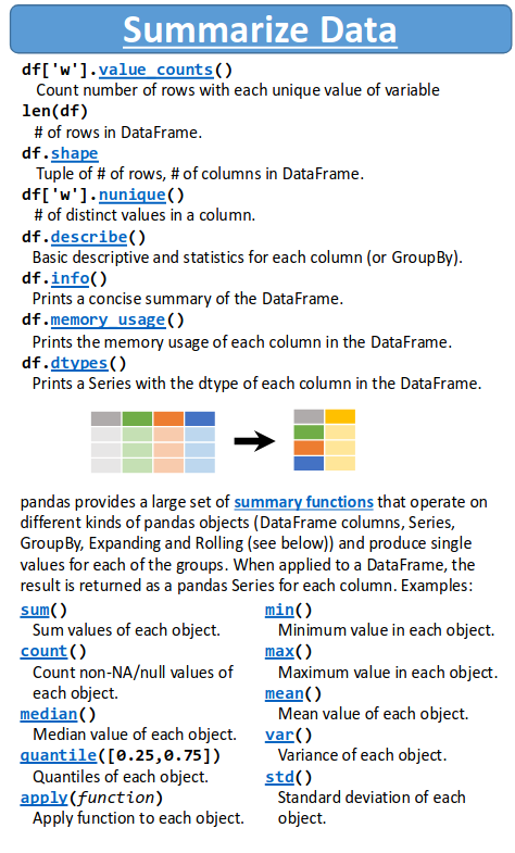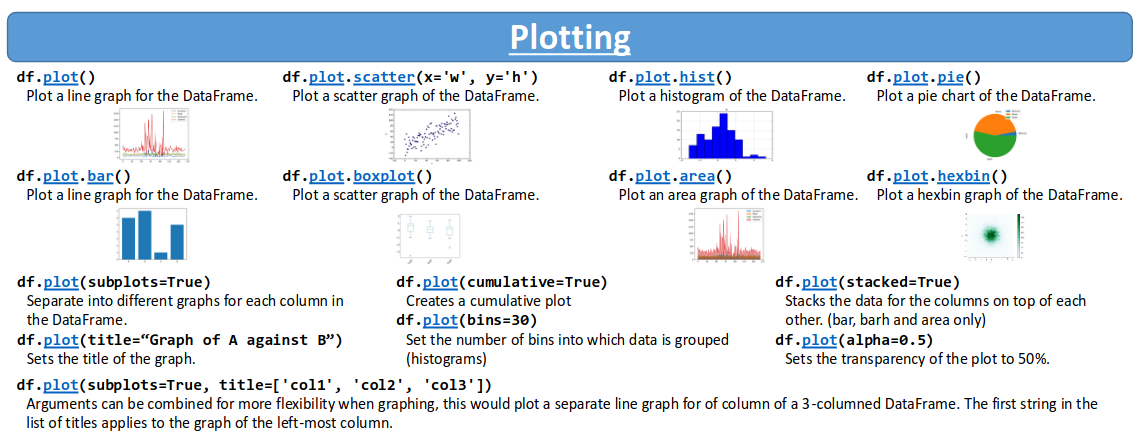 pd.merge dans les cheatsheets pandasPandas est interfacée avec matplotlib pour le tracé d’histogrammes (hist), nuages de points (scatter), séries (plot, même avec le temps !)