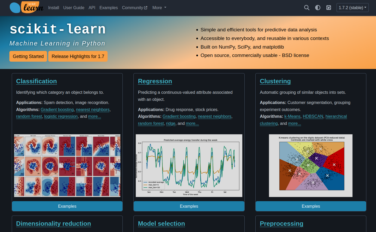Scikit-learn est une librairie python qui offre: